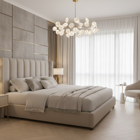 Projekt domu powstał z myślą o maksymalnym wykorzystaniu niewielkiej przestrzeni przy zachowaniu eleganckiej, luksusowej estetyki. Wyzwaniem było połączenie wszystkich funkcji technicznych, ukrycie przechowywania i utrzymanie schludnej, minimalistycznej przestrzeni. Zastosowanie przemyślanych układów, spójnej palety beżów z subtelnymi złotymi akcentami oraz wysokiej jakości materiałów pozwoliło stworzyć wnętrza, które wyglądają przestronnie, luksusowo i funkcjonalnie jednocześnie.